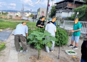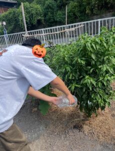 暑い中水やりをしに順番に行きました🍅🥒🍆