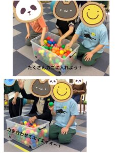 いつもバスケットボールで使っているカゴに向かって、ボールを投げ込んでいきます✨️